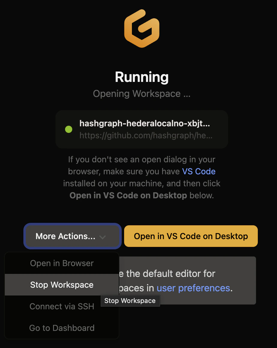 The local network comprises the consensus node, mirror node, JSON-RPC relay, and other Consensus Node services and now be set up without Docker and draining your computer’s resources by using Gitpod. Gitpod provides Cloud Development Environments (CDEs) and allows developers to work from any device without the need to maintain static and brittle local development environments. By the end of this tutorial, you will have your Hedera local node running on Gitpod.Documentation Index
